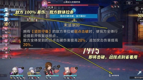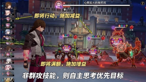 建议②:合理对敌人进行击破。其中,发条能让敌方群体拉条,圆幕可随机为单体回能,贩售机能够恢复2个战技点,火龙则能群体增攻。要时刻留意旁侧的行动条,关注下一个即将行动的敌方目前是否处于击破状态,特别是发条会使敌方群体拉条,此时应优先进行击破以打断其行动。