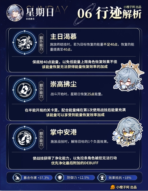 ——如果队内存在耗点不产点的知更鸟,星期日缺战技点体验会更为明显,此时需要生存位提供高打点能力,使星期日每回合拉上主C有战技点用。